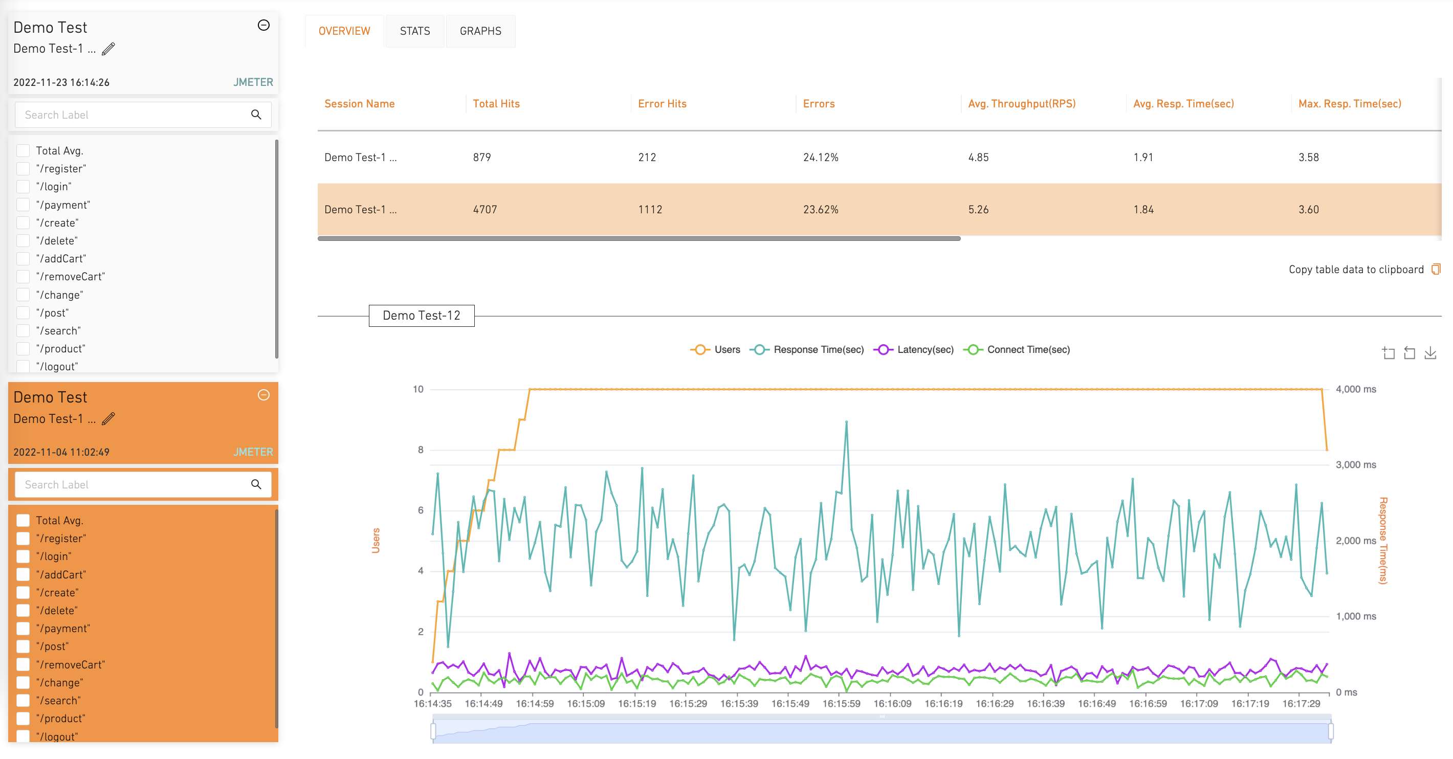 Loadium allows you to compare your tests to help you to analyze your tests better. A quick guide for it will be coming soon!
