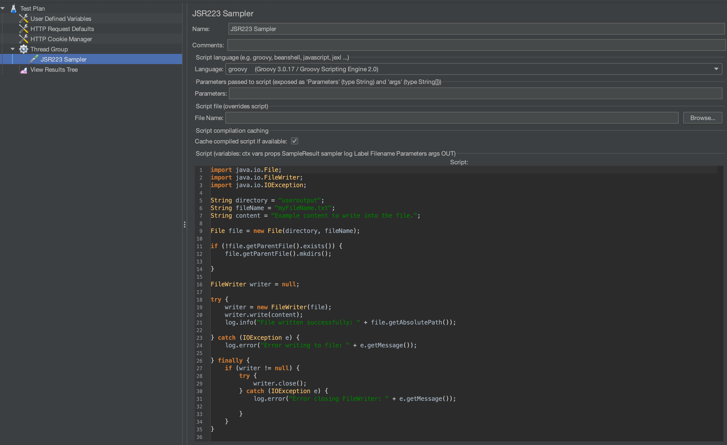 For example, we have a Groovy script for creating a `.txt` file for logging, as shown below:
