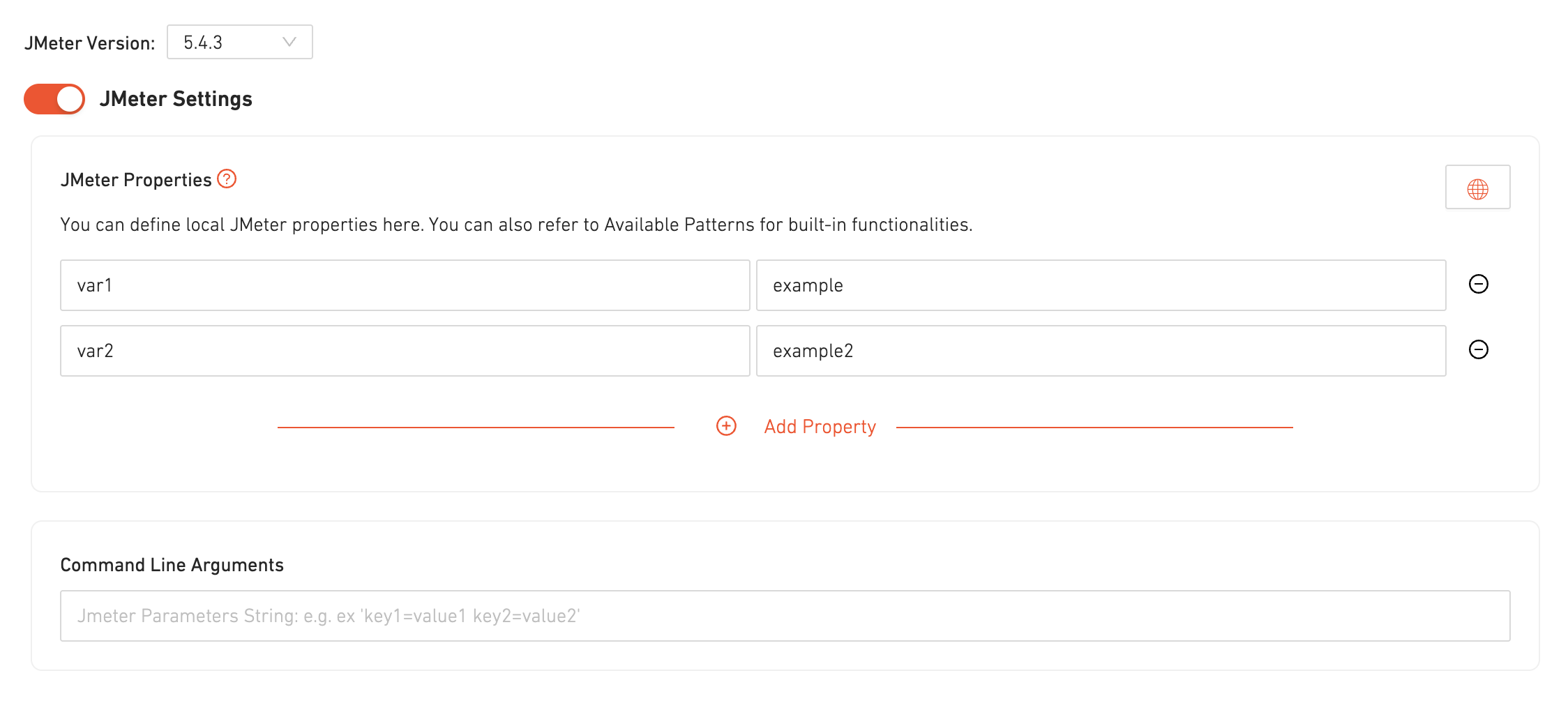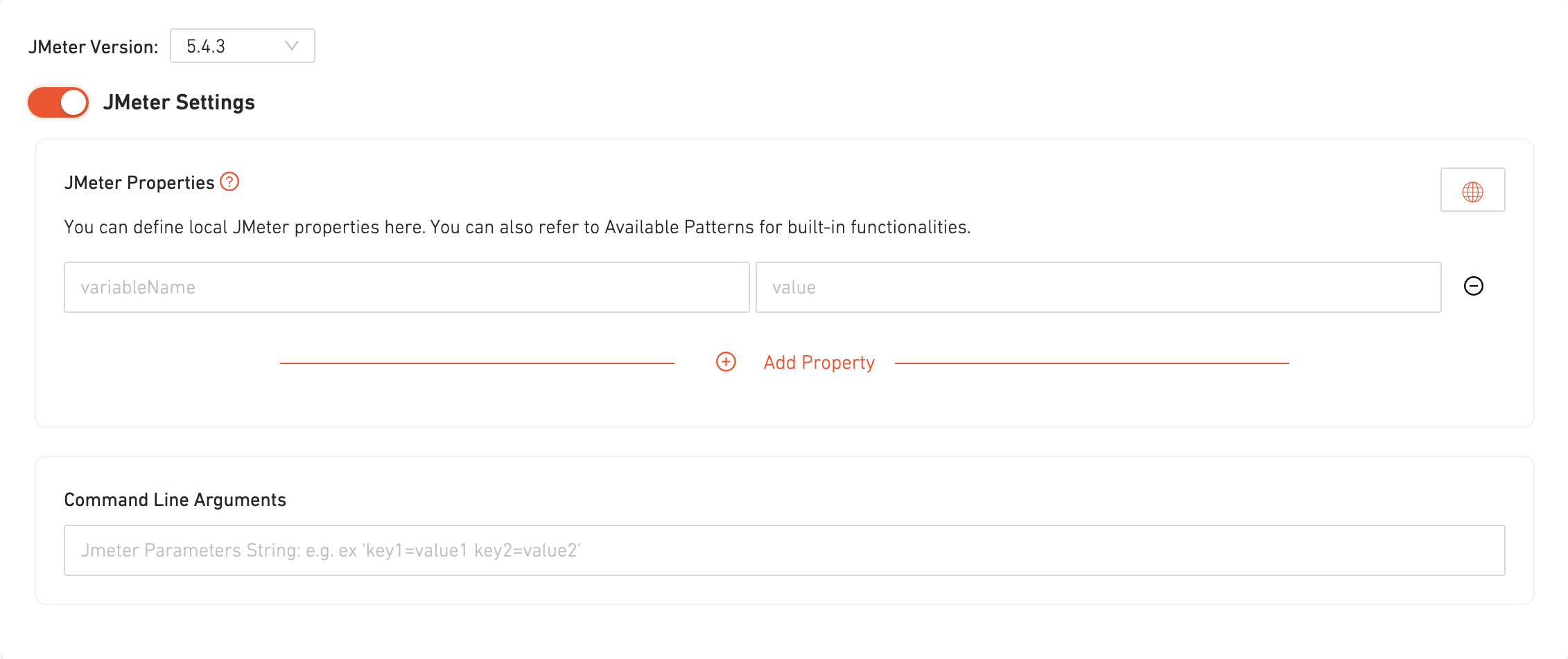 When a JMeter script is executed, execution is done with some predefined configurations. You can use Advanced Settings Panel to override those configurations, which will change the default values set within `jmeter.properties` file. Furthermore, you can also define variables and change their values using these settings.